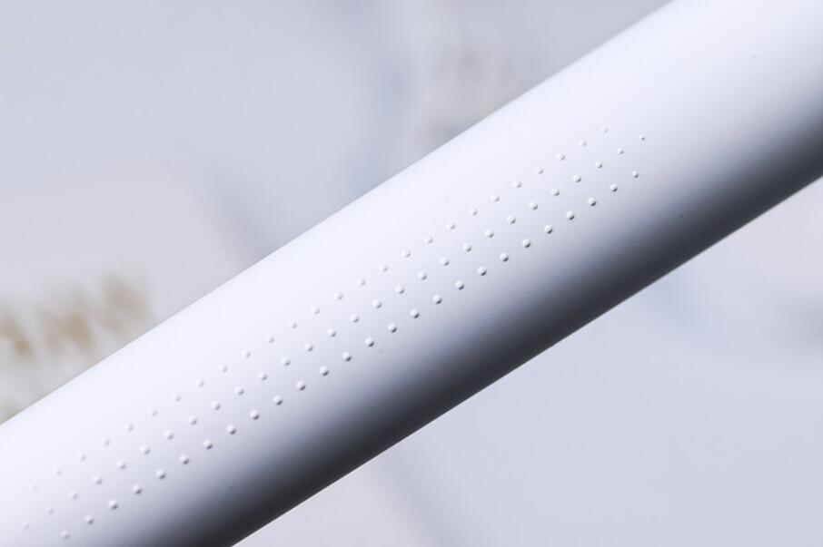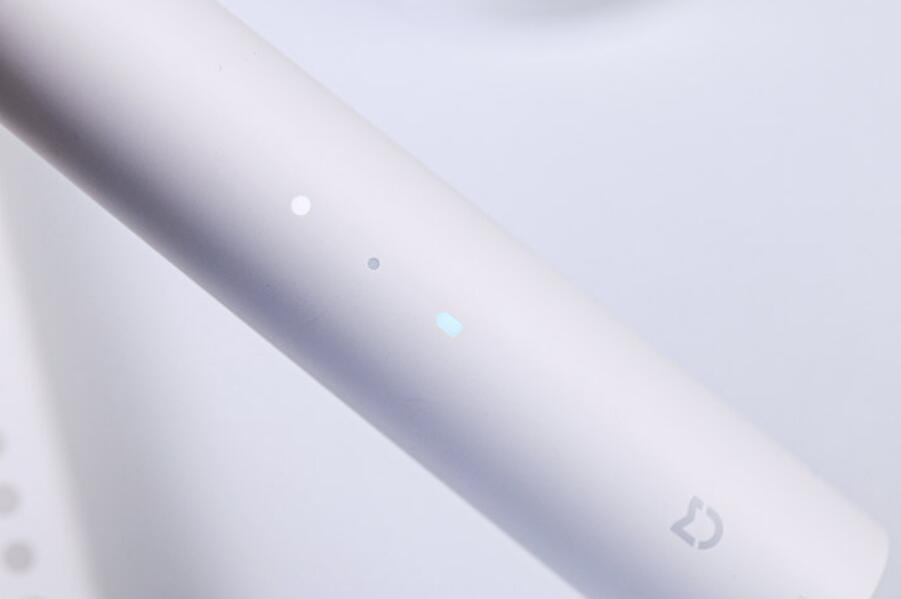 Different brushing modes and battery indicator lightsThe upper part of the front of the fuselage is a seamless switch control button design, and the lower part is followed by the standard mode and soft mode indicator, the battery-shaped battery indicator, and the Mijia brand logo. Mijia Sonic Electric Toothbrush MiJia T301 is still designed with many non-slip bumps on the back, which increases the feel when holding the toothbrush and prevents the toothbrush from slipping off during use.