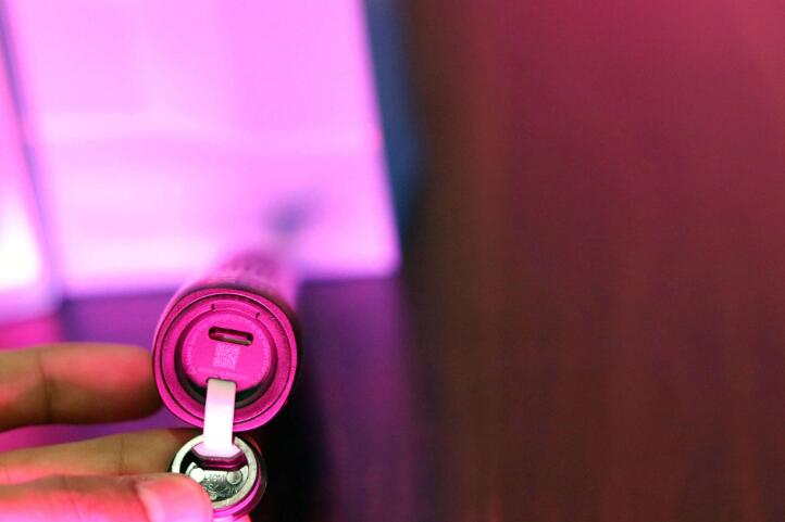 The toothbrush complies with the IPX7 standard, which is completely waterproof. Below we also have another light indicator, according to which you can understand how much battery power is left: green, yellow, and red.